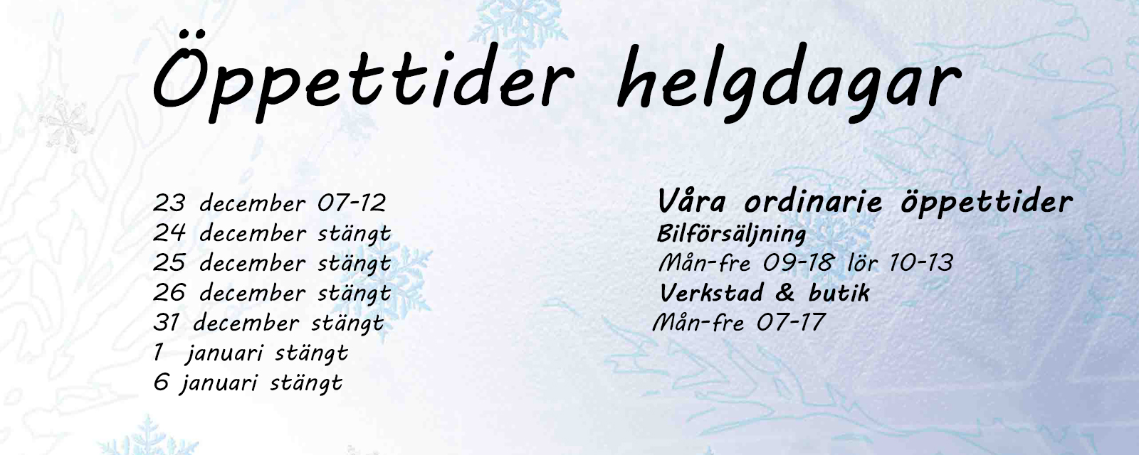 Lördag 10.00-13.00 Alla helgons dag – stängt